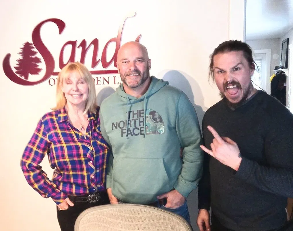 TV personality and construction guru Bryan Baeumler, centre, was at the Sands on Golden Lake in January as owner Joanne Lovering and her son Zach prepared to open Silverback Strength and Conditioning.
