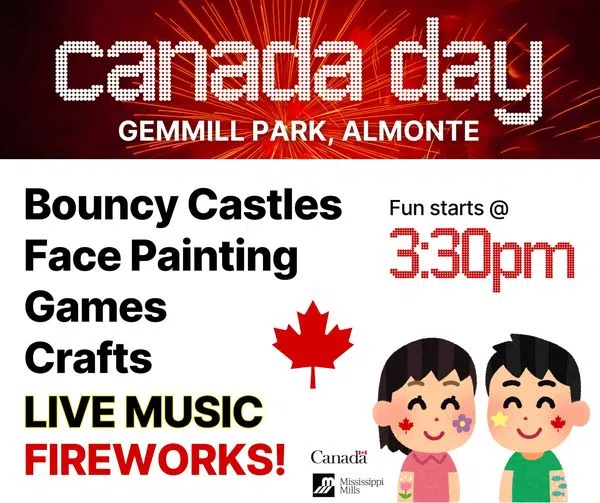 You’ll find Canada Day Festivities in Almonte situated at Gemmel Park (July 1st of course).