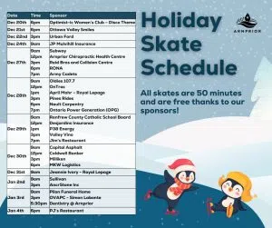 Town staff say their Holiday Skate schedule kicks off today, featuring a full lineup of free fifty-minute public skate sessions at the Nick Smith Centre made possible thanks to a number of community sponsors, including us at Oldies 107.7.