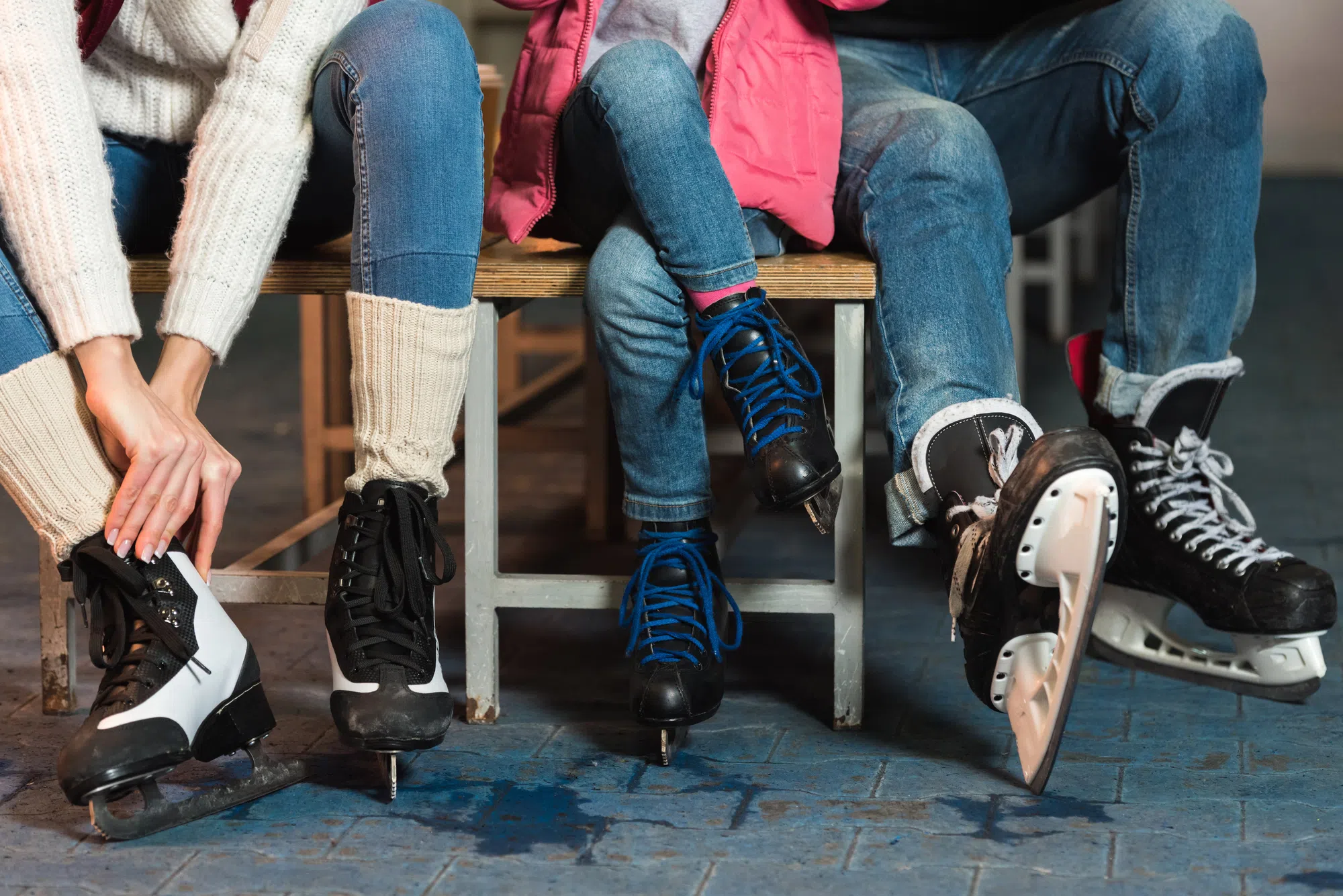 Skates and helmets are available to borrow for free from the Lending Hub, while supplies last, and the town reminds you that helmets are required for those aged 12 and under. Strollers are permitted on the ice with clean wheels and helmets on the child in the stroller.