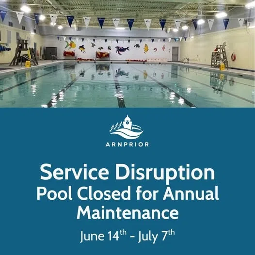 If you’ve tried earlier in the week, you already know this- but here’s a reminder from the Town of Arnprior that the Nick Smith Centre Pool is closed for annual maintenance (from June 14th) until July 7th.