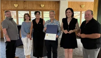 Renfrew Rotary's Janet Springer presents the Dunbar Family with the Paul Harris Fellow award. (Hannah MacMillan photo)