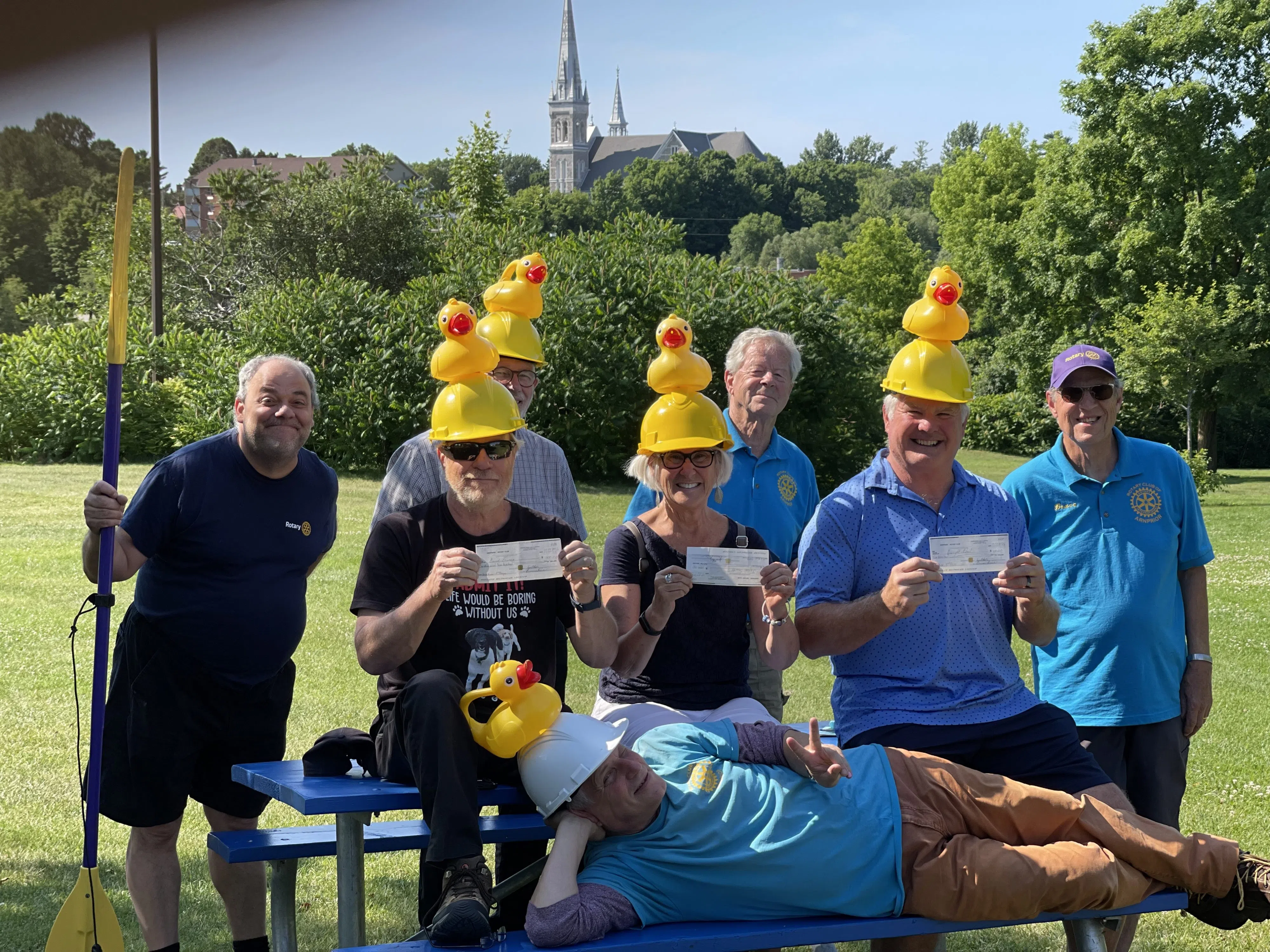 Thanks to Antrim Truck Stop, No Frills and Giant Tiger who provided spots to sell tickets in May & June. Also tremendous thanks to Ottawa Valley Air Paddle for providing kayaks & labour to rescue escaping ducks, joining Rotarians & volunteers, all of whom allow us to bring the ducks home for another year.