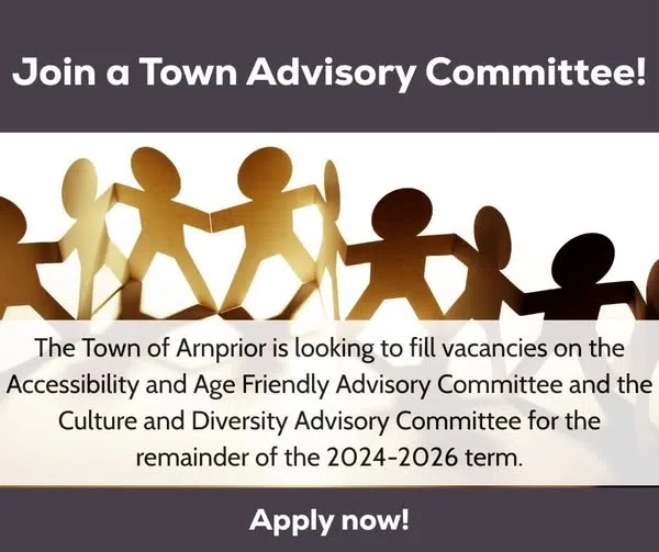 The Town of Arnprior is looking to fill vacancies on the Accessibility and Age Friendly Advisory Committee and the Culture and Diversity Advisory Committee for the remainder of the current municipal term.
