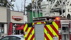 While there are historic pictures of the AFD lining the walls of the seventh Ottawa-area Firehouse Subs on Daniel Street, and a lot Arnprior Fire Service equipment was outside to herald its grand opening, I think proprietor Raj Manchand overstepped the mark when he promised me free delivery of my New York Steamer sub via the Arnprior ladder truck- but that’s ok, I have a long reach!