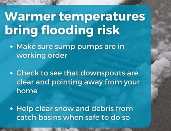 The MVCA cautions that with warmer temperatures expected this week, rapid snowmelt may lead to rising water levels, unsafe ice, and localized flooding.