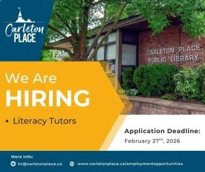 Would you like to spend some time this summer helping kids from 3-8 years of age to improve their Literacy skills? The Carleton Place Public...